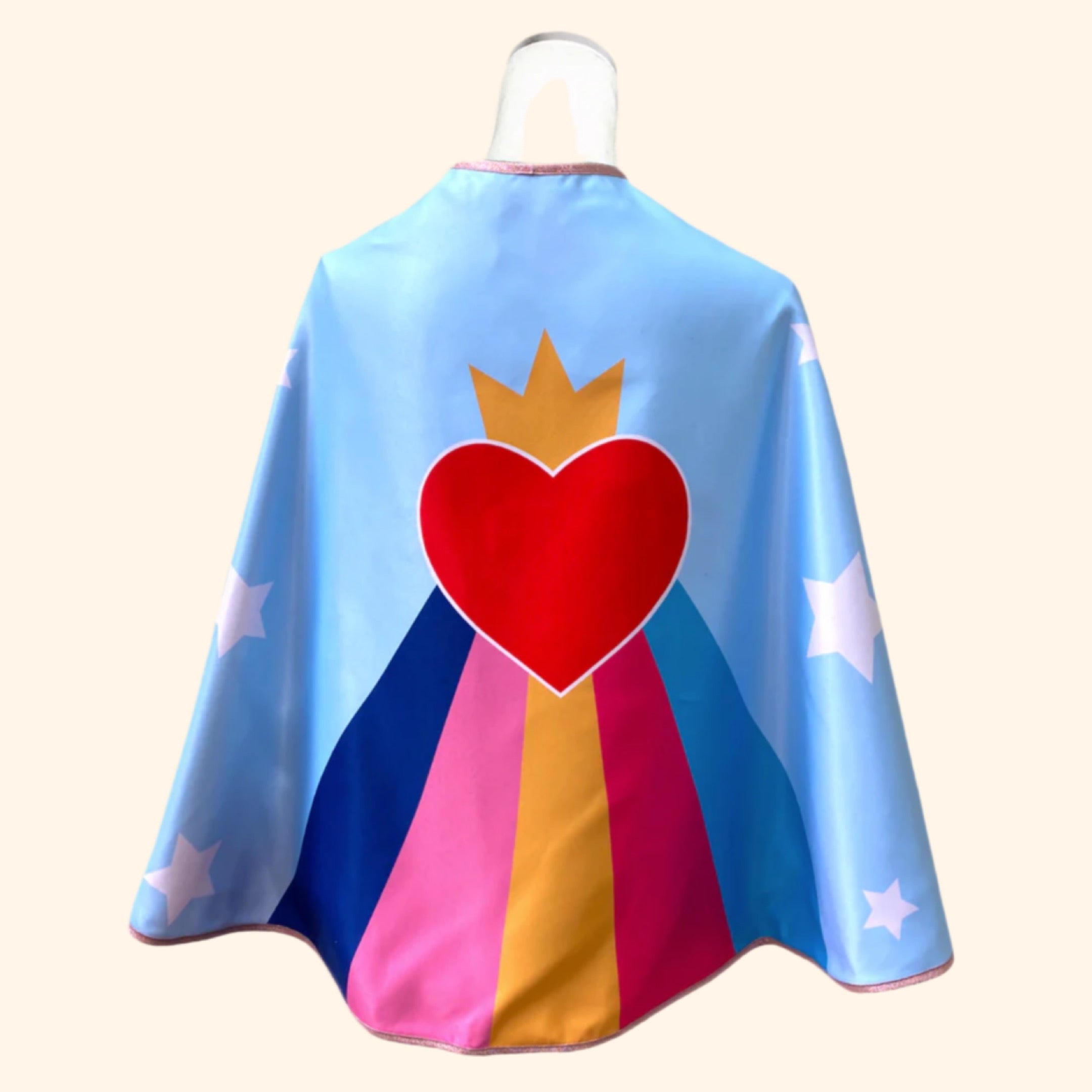 Avec cette cape de super-héros, votre enfant va sauver le monde et vous faire voir la vie en rose malabar ! Son design rétro-pop-funky en fait l'accessoire idéal pour laisser libre cours à l'imagination des petits aventuriers. Que ce soit une super-héroïne ou un justicier masqué, chaque minus devient le personnage qu'il souhaite selon son humeur du jour !